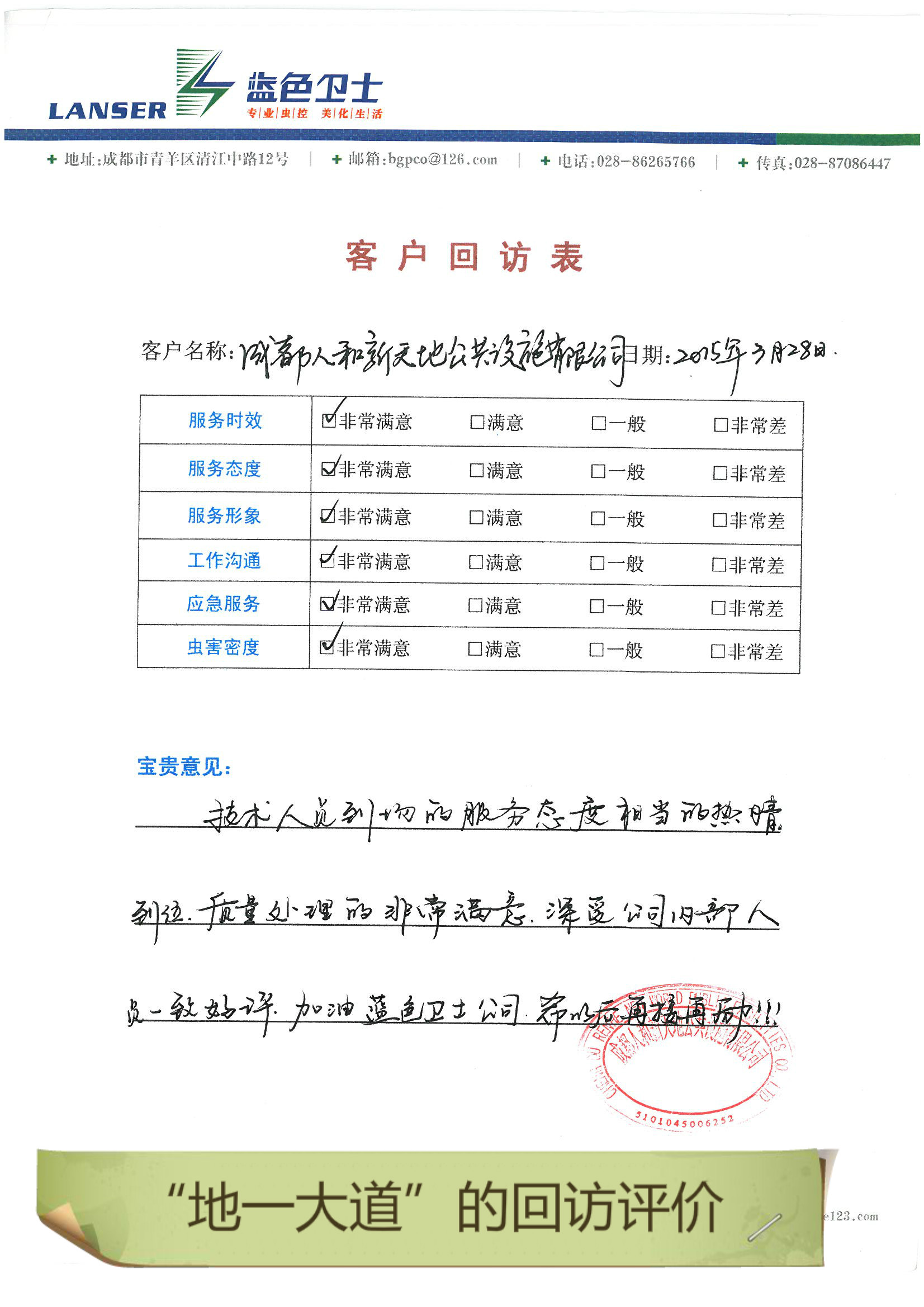 通過合作,對四害的消殺控制的很好,符合項目品質要求!